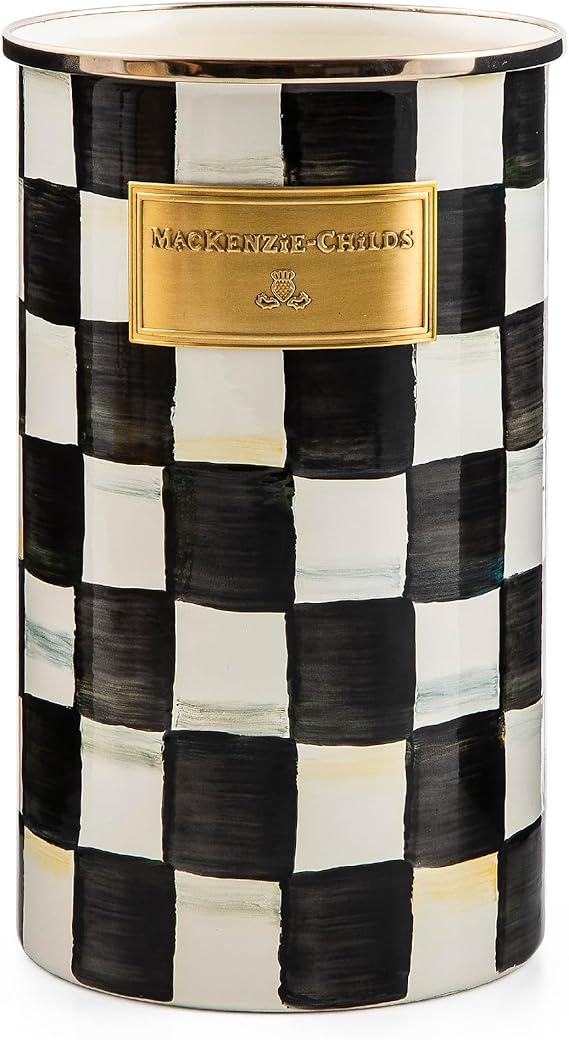 Enamel Utensil Holder, Kitchen Utensil Holder for Countertop, Storage Caddy, Black-and-White Courtly Check