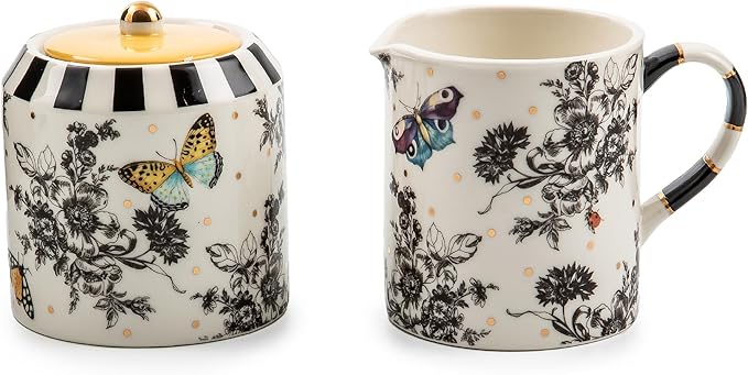 Creamer and Sugar-Bowl Set, Cream Dispenser and Sugar Holder, Unique Kitchen Decor, Butterfly Toile