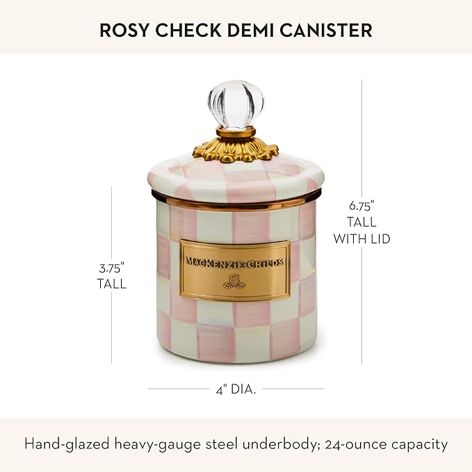Rosy Check Enamel Canister, Pink-and-White Kitchen Storage Container with Lid, Demi