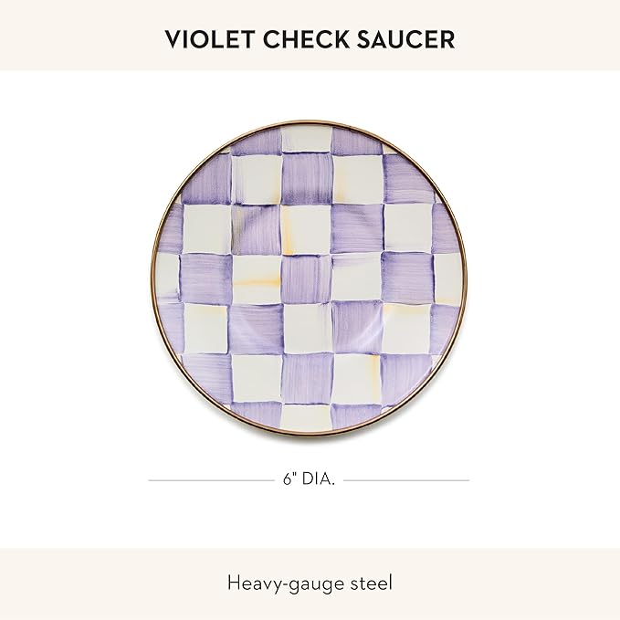 Enamel Saucer, Small Coffee and Teacup Saucer, Purple-and White Violet Check