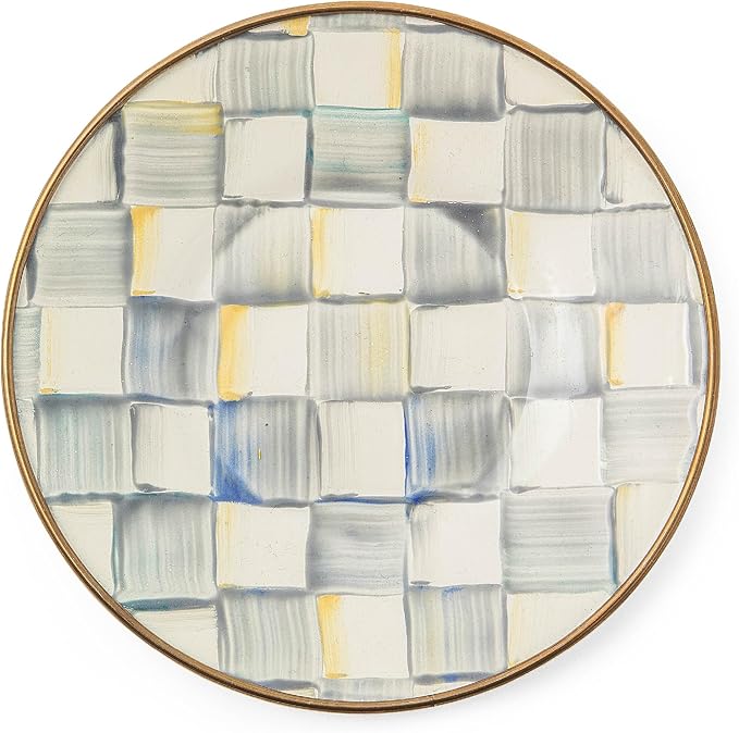 Enamel Saucer, Small Enamel Plate for Teacups, Gray-and-White Sterling Check
