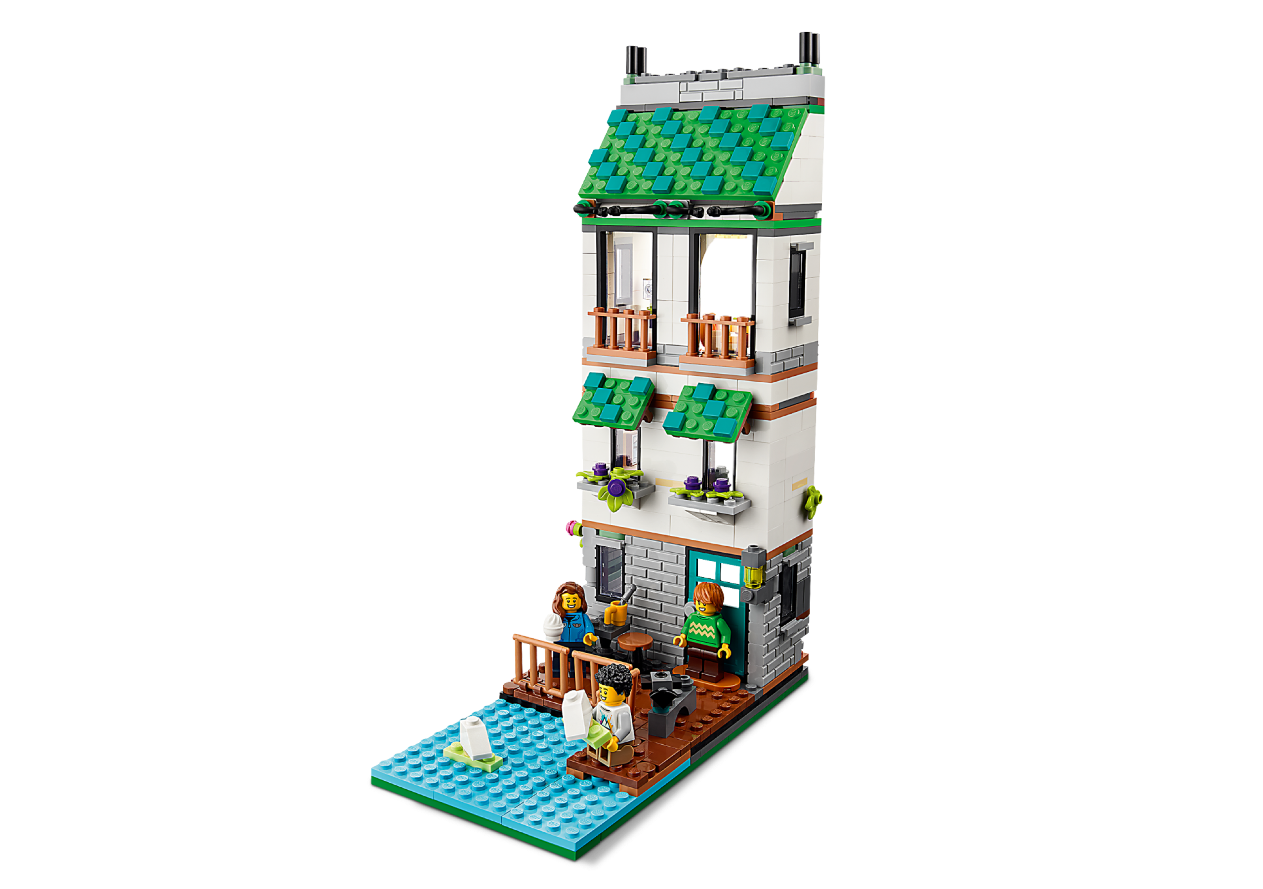 Kids have the choice of creating 3 different LEGO houses with this brilliant playset. They can build a 2-floor family house with a garden terrace, rebuild it into a 3-floor canal house with an attic office, art gallery and café, or make a vacation lake house on the water with a boat. Each model can be adjusted and played with in 2 positions and comes with 3 minifigures (2 adults and 1 child), who can swap clothes and hair to create different characters.