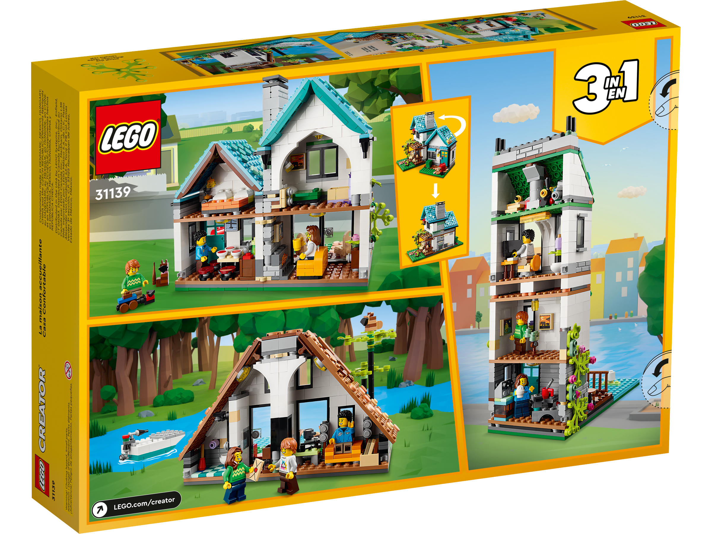 - 3in1 model houses – Kids can role-play fun family stories with this LEGO® Creator 3in1 Cozy House (31139) playset, featuring 3 models in 1: a family house, a canal house and a lake house