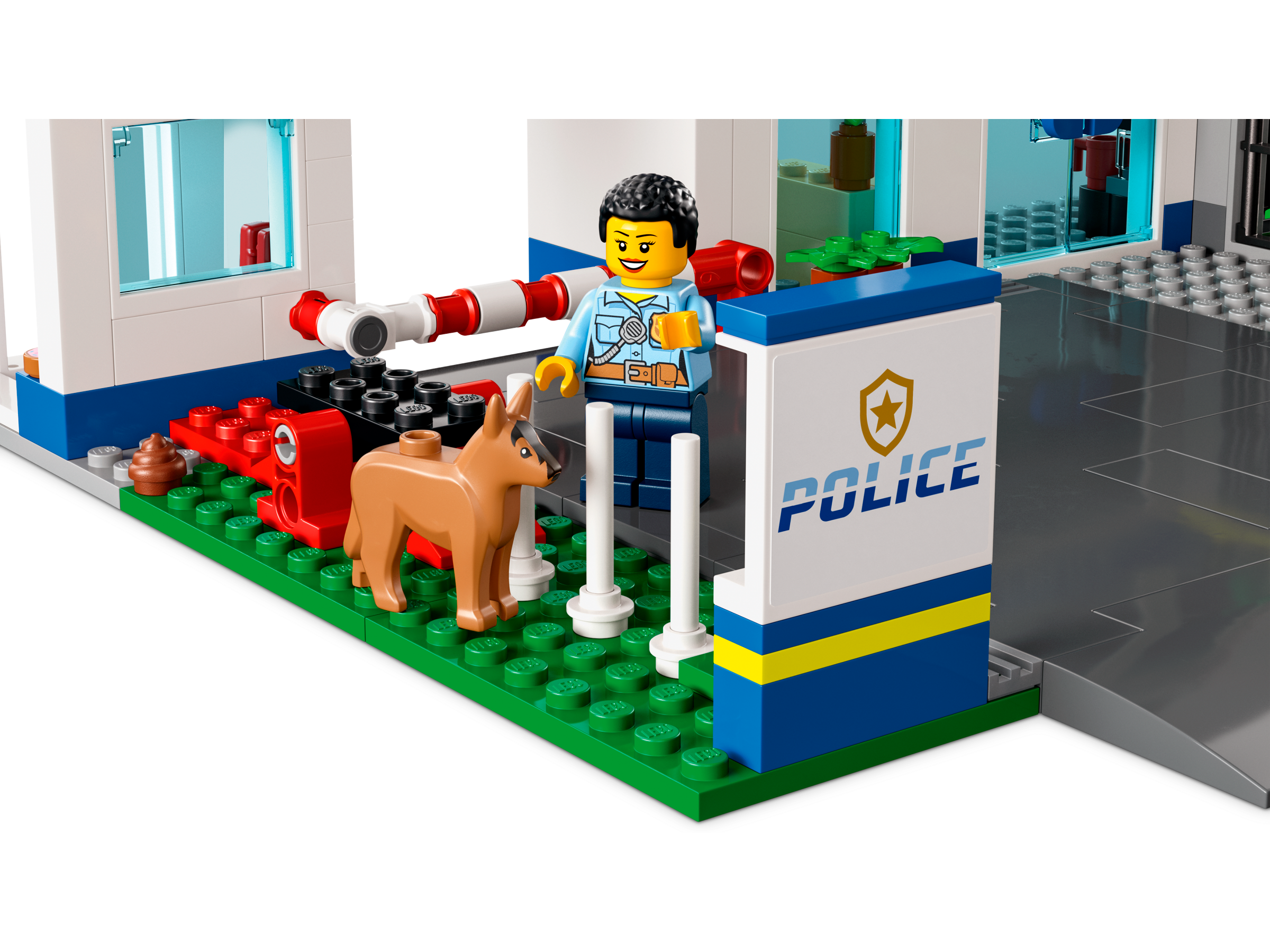 - What’s in the box? – Everything kids need to build a 3-level police station, patrol vehicle, helicopter and garbage truck, plus a dog figure and 5 minifigures, including 3 LEGO® City TV characters