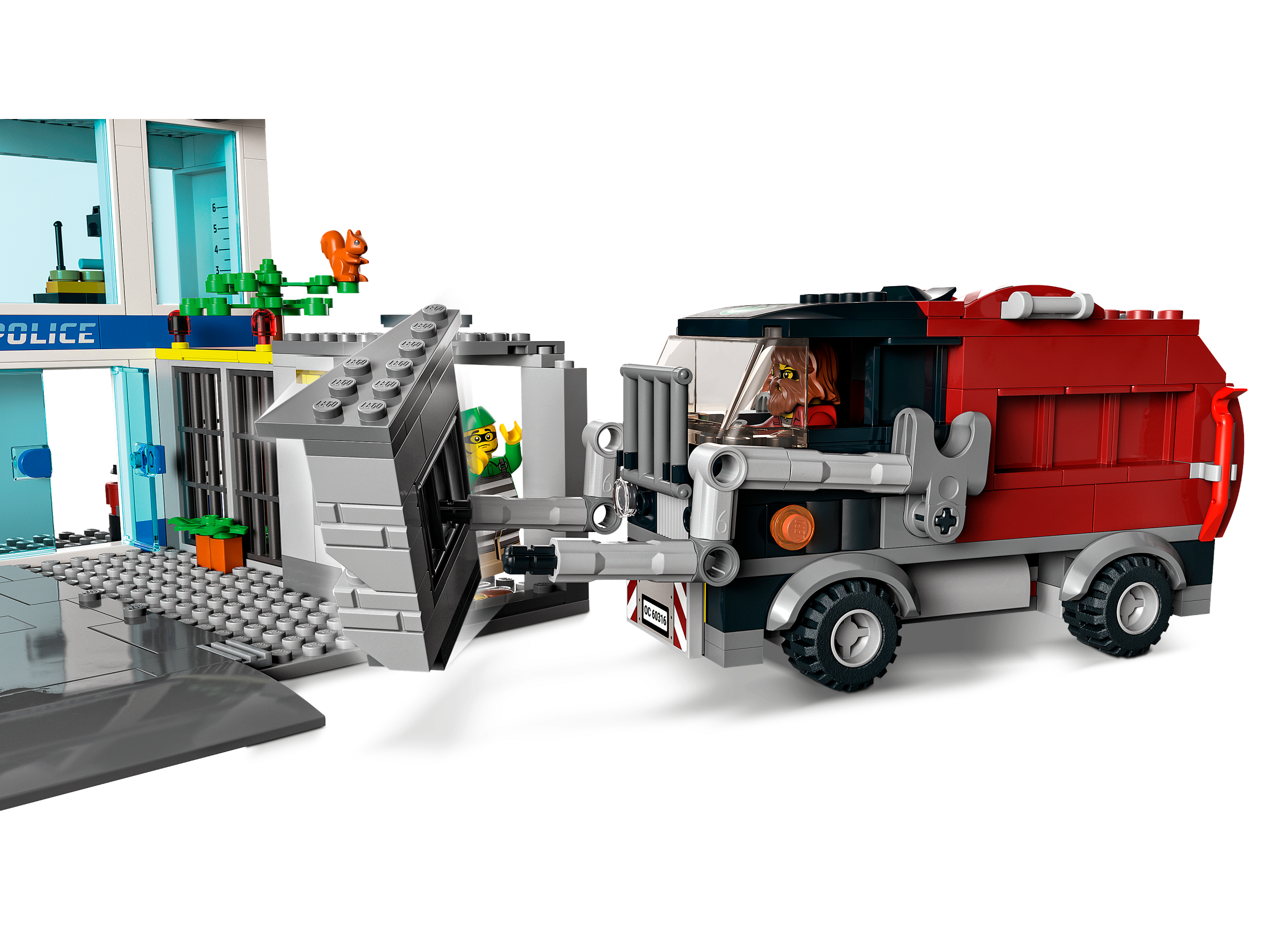 - Features and functions – The garbage truck has a container lift and 2 rams for breaking down the ‘easy escape’ prison wall. Also includes a Road Plate for connection to other LEGO® City sets