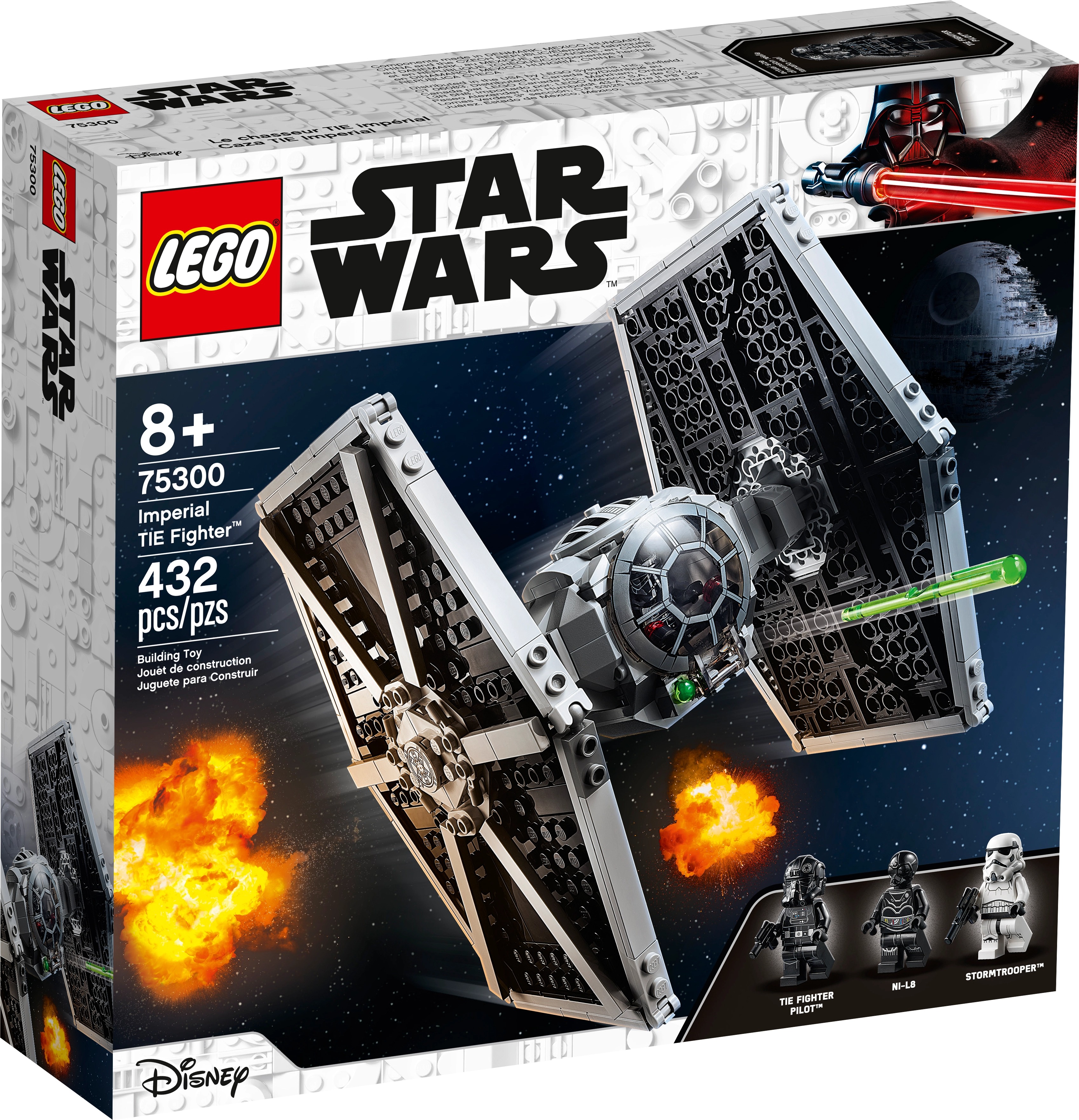 There are also 2 LEGO minifigures: a TIE Fighter Pilot with a blaster pistol and Stormtrooper with a blaster, plus an NI-L8 Protocol Droid to inspire fun, creative role play and storytelling.