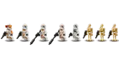 - 5 LEGO® minifigures and 3 LEGO droid figures – Commander Cody, a 212th Clone Gunner, 3 212th Clone Troopers and 3 Battle Droids, all with weapons, plus a buildable Dwarf Spider Droid