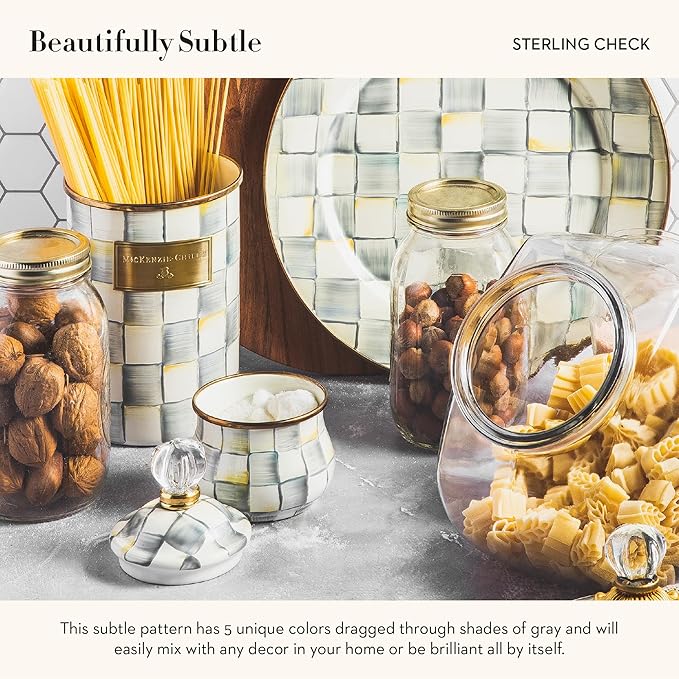 Enamel Creamer and Sugar-Bowl Set, Cream Dispenser and Sugar Holder, Unique Kitchen Decor, Gray-and-White Sterling Check