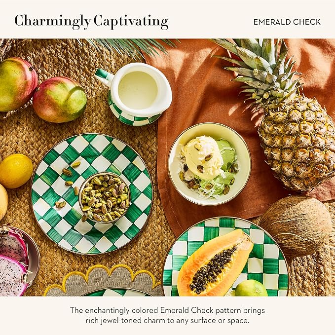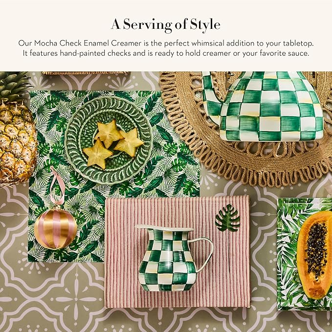 Enamel Creamer, Creamer Dispenser with Pour Spout, 14-Ounce Capacity, Green-and-White Emerald Check