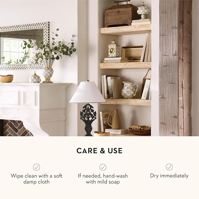 Enamel Curiosity Pot, Decorative Container for Home Decor, Gray-and-White Sterling Check