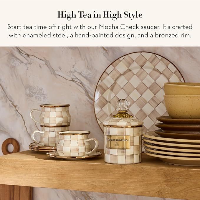 Enamel Saucer, Small Coffee and Tea Cup Saucer, Brown-and-White Mocha Check