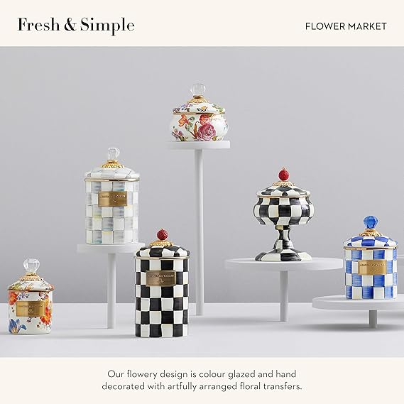 Enamel Squashed Pot, Cute Enameled Container with Lid, 20 Ounces, White Flower Market