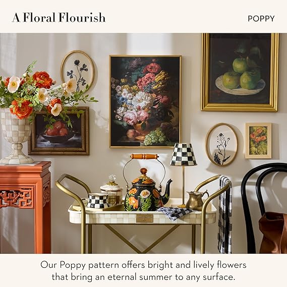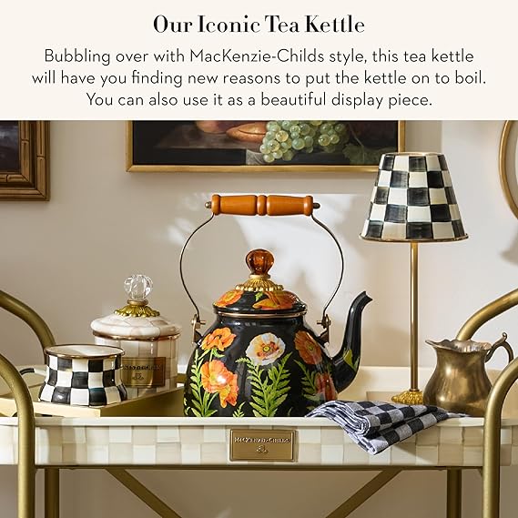 Enamel Tea Kettle, Cute Tea Kettle for Stovetop, 2 Quarts, Poppy