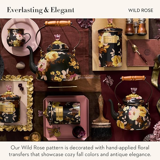 Enamel Tea Kettle, Cute Tea Kettle for Stovetop, 2 Quarts, Wild Rose Brown