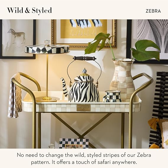 ELEGANT TEA KETTLE: There’s no need to change the gorgeous, hand-applied, and expertly styled stripes on our Zebra tea kettle. Flourishes, like a wooden handle, a checkered resin finial, and a bronzed stainless-steel rim, complete this kitchen essential.