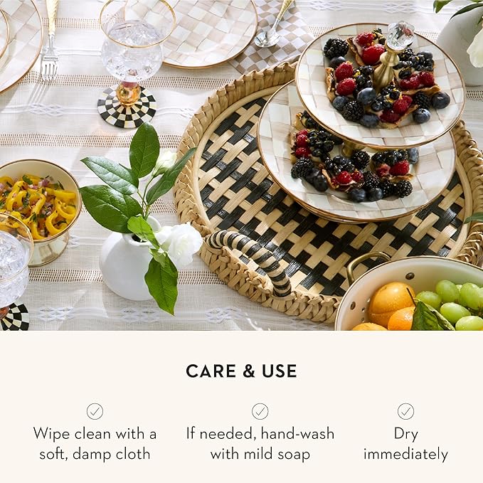Enamel Two-Tier Sweet Stand, Two-Tiered Serving Tray for Dessert, Brown-and-White Mocha Check