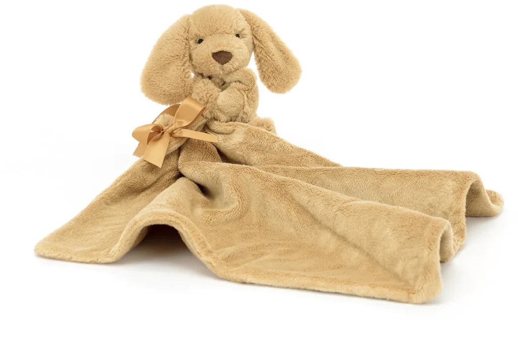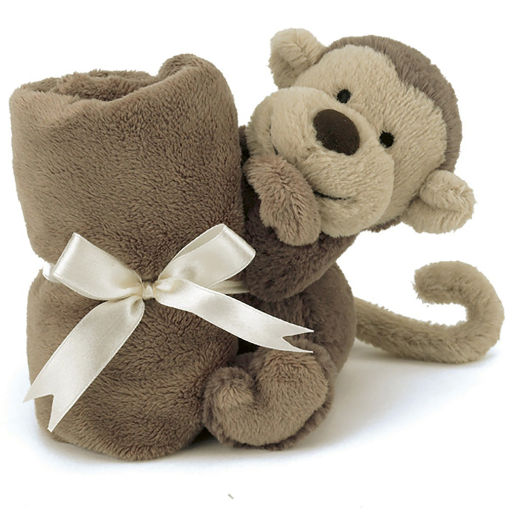 Meet the Baby Jellycat Soothers - the perfect gift for newborns! Made from recycled fibres, these Soothers feature Jellycat's most beloved plushies and come neatly rolled up with a Baby Jellycat grosgrain ribbon. Get ready to cuddle and soothe your little one with these eco-friendly and adorable Soothers!