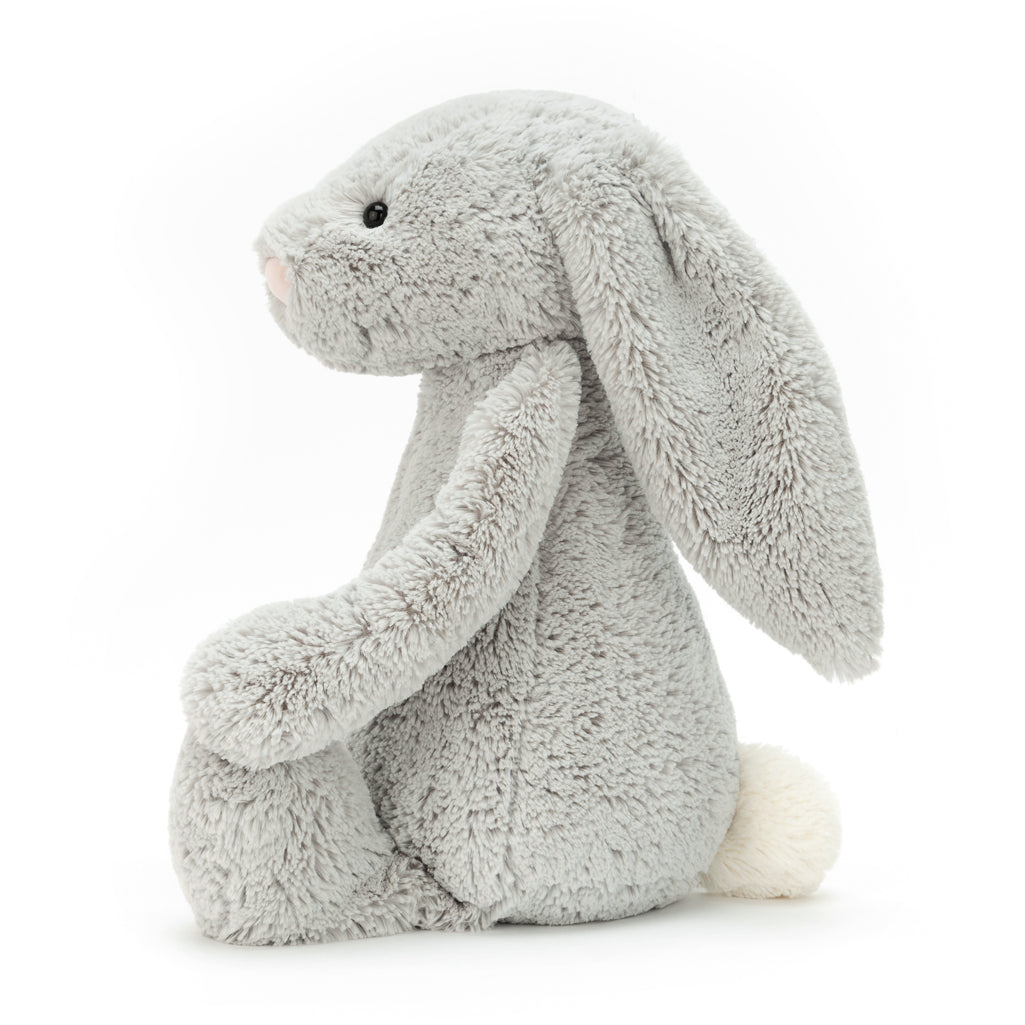 In Bashful Silver Bunny’s world, everything is silvery-soft and sweet—just like them! From their plushy tummy to their long, floppy ears, this gentle grey bunny is made for endless snuggles and baby giggles. Perfectly sized for tiny hands, Bashful Silver Bunny is a timeless companion for cribs, car seats, and cuddly naps.