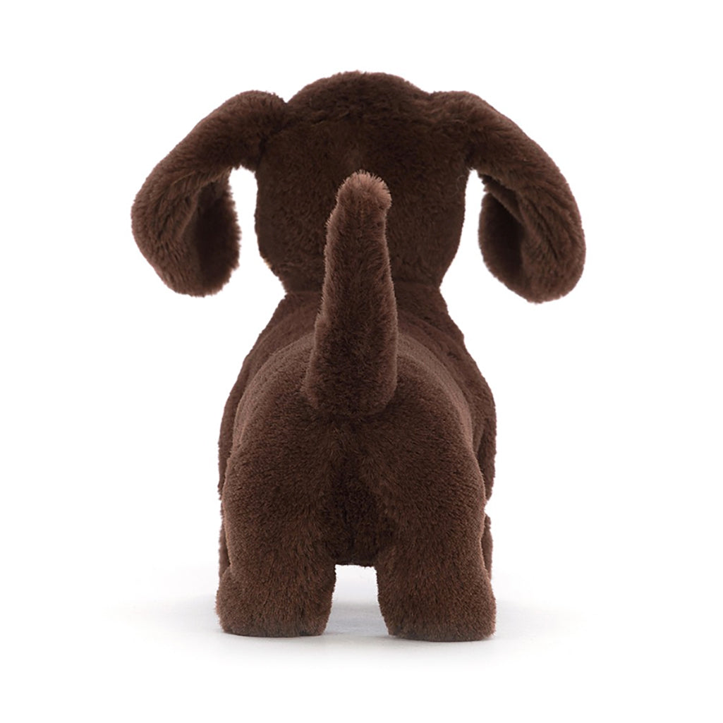 Tiny legs and a great big heart - that's Jellycats Otto Sausage Dog! This intrepid pup is divinely dinky in dark chocolate fur with caramel patches. With waggly ears, a perky tail, golden eyebrows and sassy spirit, bright-eyed Otto's a playful little pal!
