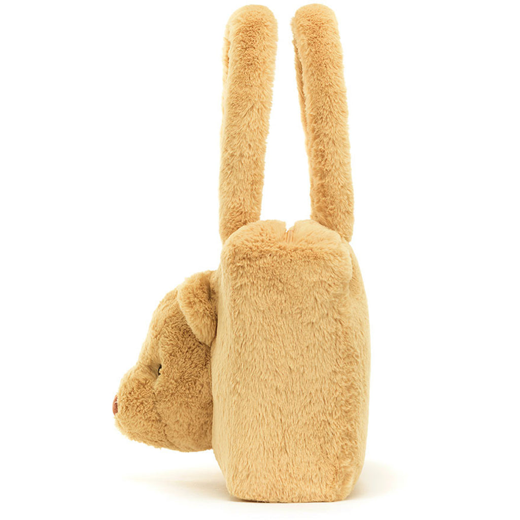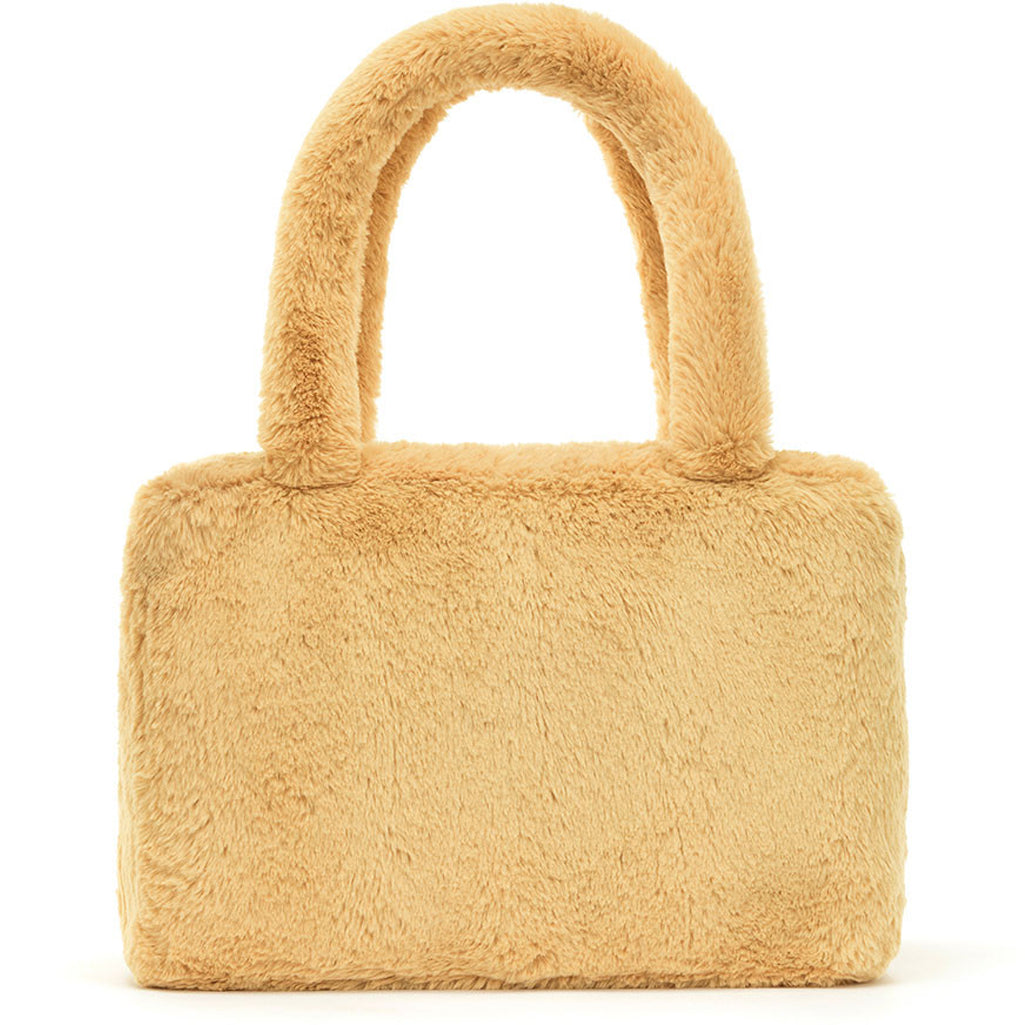 Unleash your inner quirky side while strutting around town with the plush pal bag. Made with cozy fuzzy handles and featuring a striking friendly face, this bag is both soft and sturdy. It also has a cotton lining and a shiny silver zipper with a Jellycat tag - it's the most unique way to tote your belongings.