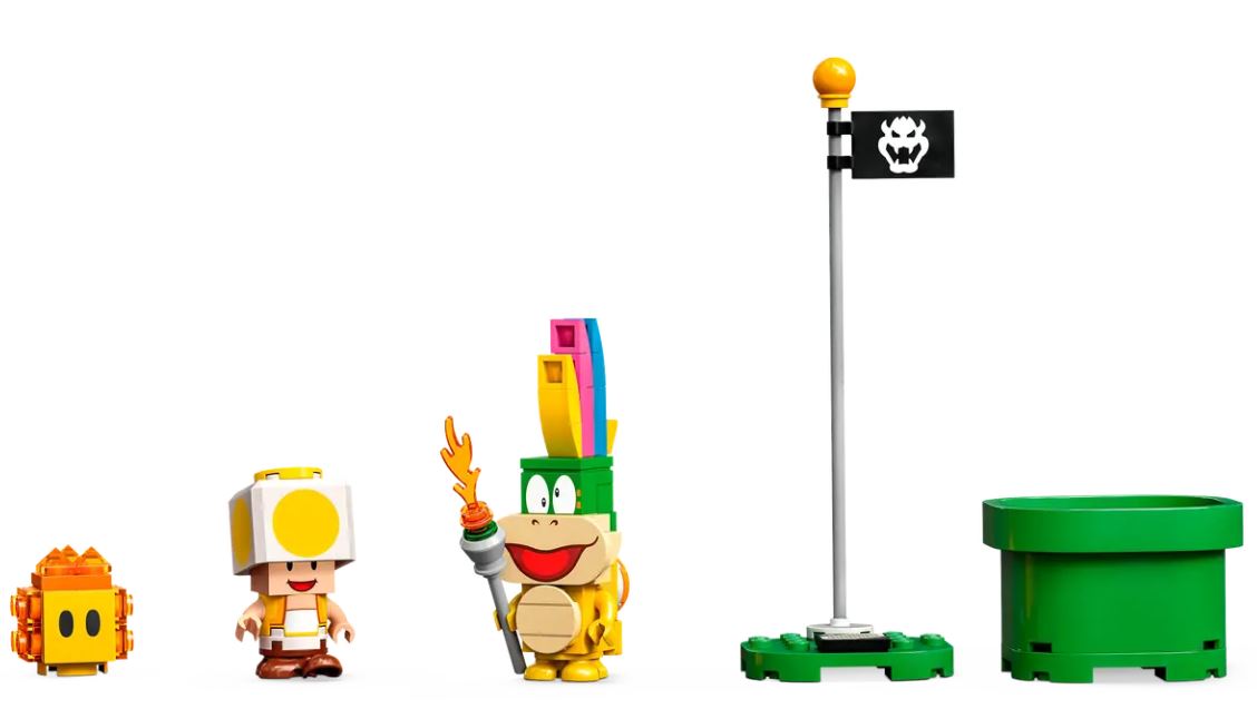 - Digital coin-collecting play This toy playset features a Start Pipe, Goal Pole, swing set, a Lava Bubble-launching challenge, a Flying ? Block and Lemmy and Yellow Toad figures
