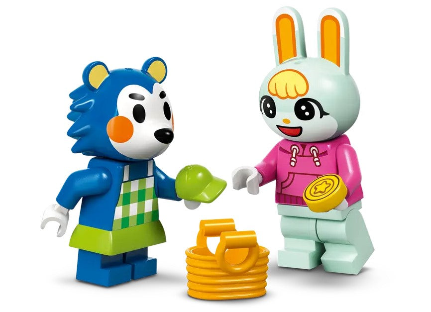 This pretend shop playset comes with Animal Crossing minifigures Mabel, a hedgehog, and Sasha, a rabbit. Kids can help Sasha pick some new clothes and pretend to alter the outfit with the scissors and sewing machine to make it fit perfectly or head to the stall outside to finish their outfit off with the perfect accessory, paying for it with Bells, just like in the video game.