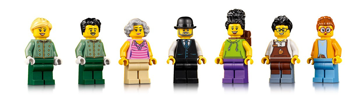 - Includes 7 minifigures Characters include a bellhop, receptionist, coffee vendor and gallery owner among the collection of hotel guests and staff