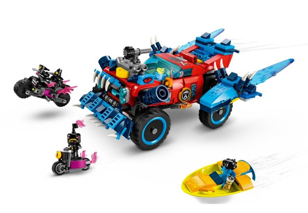 Kids aged 8+ speed into the dream world with this LEGO DREAMZzz Crocodile Car (71458) building toy set. Based on the TV show, the set lets kids create an amazing car that will help save Jayden from the scary Night Hunter! 1 set, 2 building options The playset includes 2 building options and lots of story-led instructions, encouraging kids to choose their own adventure and enjoy double the playtime. They can decide to build a crocodile car to fight off the nightmares or a super-fast off-roader and mini-boat to chase them down. In crocodile mode, the vehicle has posable arms and legs and a disc shooter hidden in the front grille so kids can fire discs from the croc's mouth. In truck mode, the vehicle has rolling wheels and a removable roof so a minifigure can be seated inside. Fantastic minifigures The building toy set includes detailed minifigures of Cooper and Jayden, plus the Night Hunter, who comes with a cool motorcycle toy and an evil helper.
