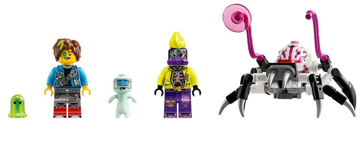 - 2 LEGO minifigures The action is brought to life by hero Mateo and villain D-Shock, as well as figures of Z-Blob, the Cyber Brain Spider and a VR Dreamling