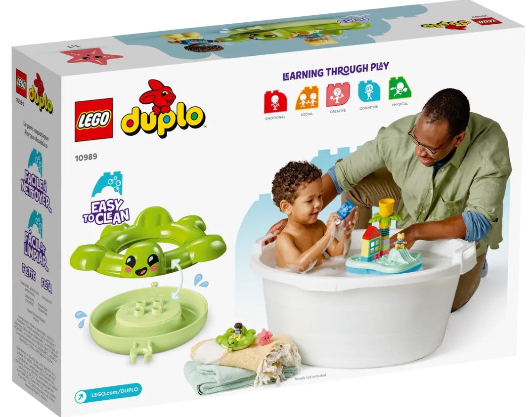 - Building fun at bath time This toy playset measures over 8.5 in. (22 cm) high, 10 in. (25 cm) wide and 7.5 in. (19 cm) deep and is part of a range (sold separately) of LEGO DUPLO bath toys