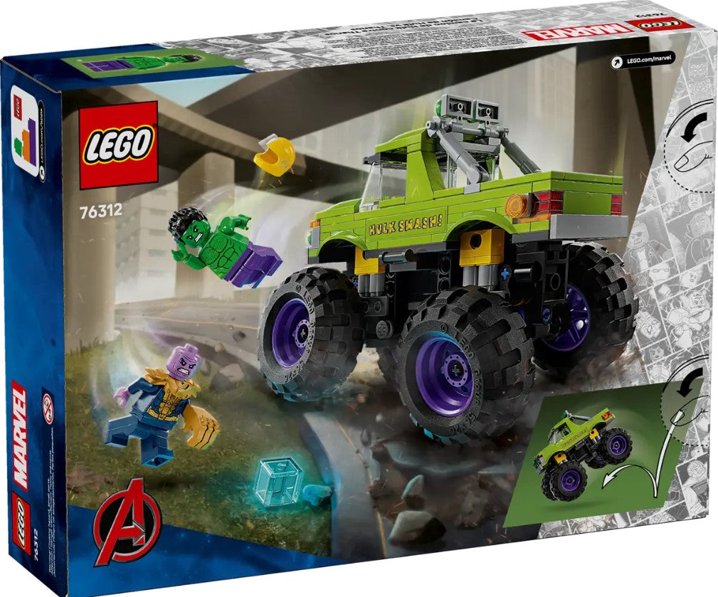 The Hulk Truck vs. Thanos (76312) is a buildable LEGO ? Marvel playset featuring Hulk's heavy-duty truck and 2 Super Hero minifigures. This high-quality gift for boys and girls aged 7 and up is great for kids who are fans of the Marvel Avengers movies, big trucks and build-and-play LEGO set adventures.