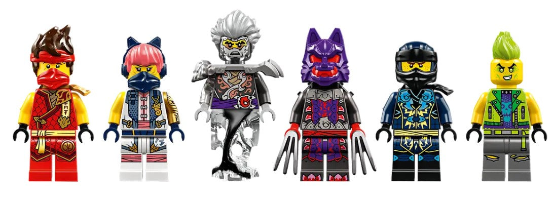 - 6 NINJAGO minifigures This ninja toy for kids includes ninja Kai and Sora, in their tournament armor, who battle Cinder, a Wolf Mask Warrior and, exclusive to this set, Evil Jay and Tox