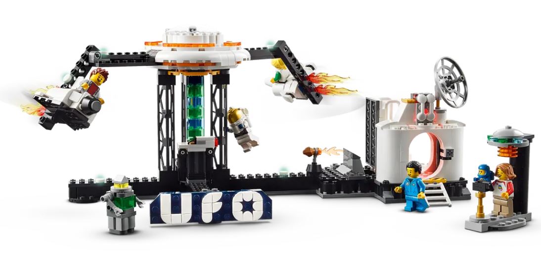 - 3 different rides Space fans can build 3 different amusement park rides: a Space Roller Coaster, a drop tower and a carousel