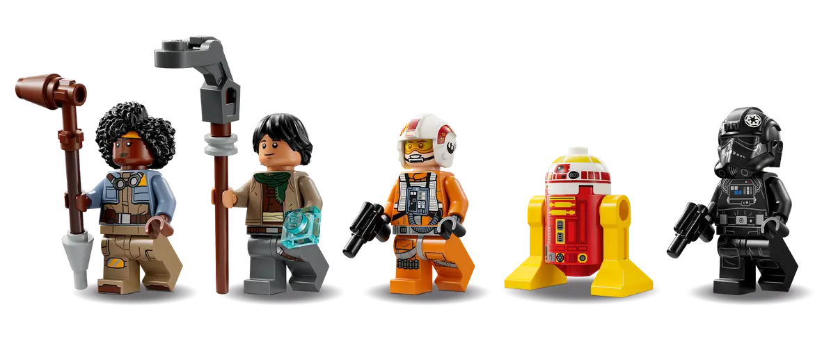 The buildable adventure playset also includes 4 LEGO?Star?Wars?minifigures with accessories, plus an L3-G0 droid LEGO figure that fits behind the X-wing cockpit.