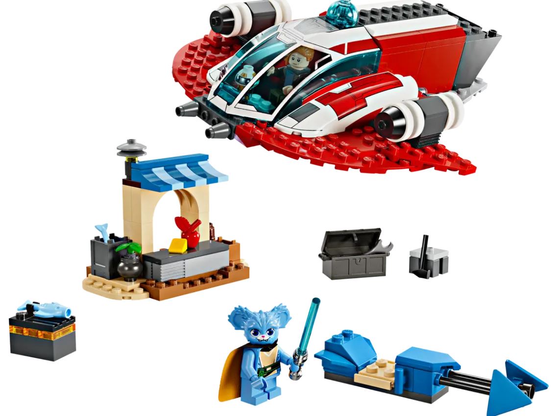 Introduce preschoolers aged 4+ to building and playing in the LEGO?Star?Wars universe with this starter set featuring The Crimson Firehawk starship from?Star?Wars: Young Jedi Adventures. It has a Starter Brick base to give young builders a confident start, and there's space for all 3 included?Star?Wars?characters (Nash Durango and Nubs LEGO minifigures, plus an RJ-83 LEGO droid figure) in the cockpit. The set also includes a?Star?Wars?buildable speeder bike toy that fits inside the starship vehicle, plus a small marketplace build for creative play.