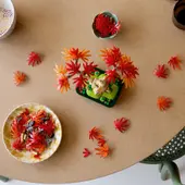 Capturing the beauty and vibrancy of real red maple bonsai trees, this LEGO plant has red and orange leaves and sits in a dark green plant pot. Relax and unwind as you create the plant before displaying it proudly as home decor or office decor that will bring a touch of calm and serenity wherever it’s placed.