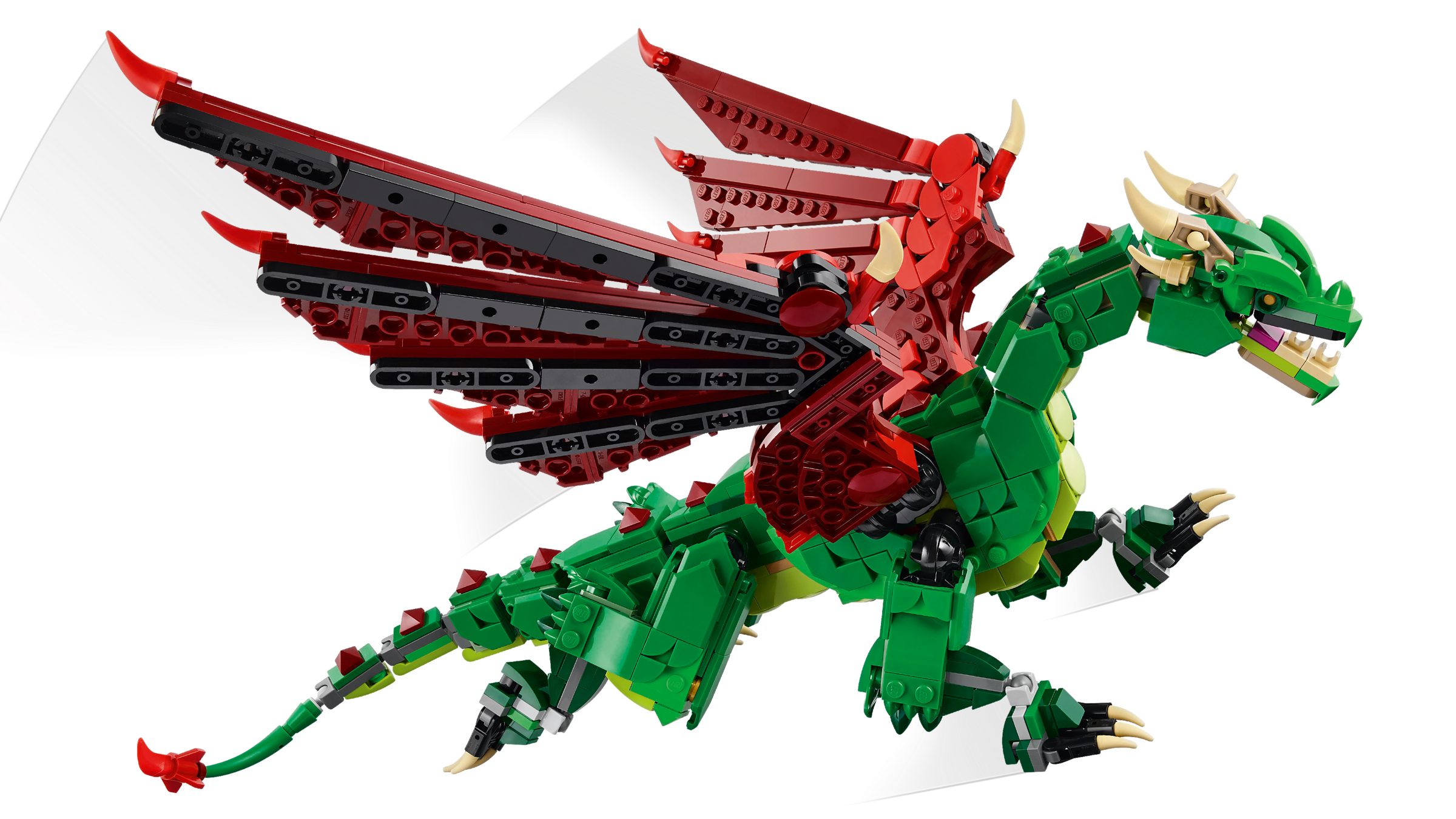 - 3 medieval creature toys in 1 box – The LEGO® Creator 3in1 Medieval Dragon toy lets boys and girls aged 9 and up build and rebuild 3 different fantasy animal toys using the same bricks