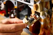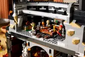 The 1st-floor interior includes Gollum’s hideout, a weapons forge and a prison with a raisable Orc cage. Above the 2nd-floor dining area you’ll find a room with a throne that opens to reveal a hidden map of Middle-earth. The 4th floor is home to Mouth of Sauron’s study, while the 5th floor houses a tower library with a rotating ladder. The black gate is automated and the Eye of Sauron illuminates for a captivating display.