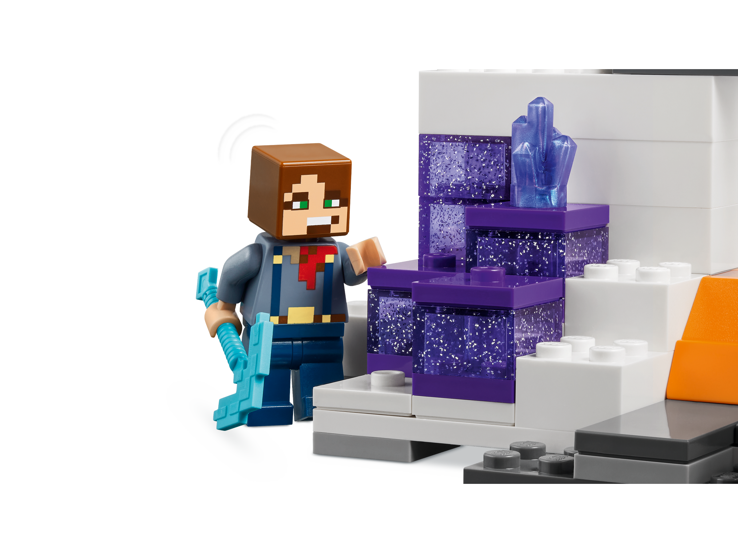 Kids join the Badlands Explorer in an abandoned mine in the Badlands biome, where they place TNT among the stone and operate an explode function to reveal copper, gold, redstoneand amethyst crystals. They load up a minecart and head down the track to exit the mine. From there, they travel by donkey (complete with large saddlebags) to the Explorer’s base, with its bed and crafting equipment. Hostile mobs that must be battled along the way include a Minecraft cave spider, Creeper™, husk and 2 slimes. For added digital fun, builders can zoom in, rotate models in 3D and track their progress using the fun, intuitive LEGO® Builder app.