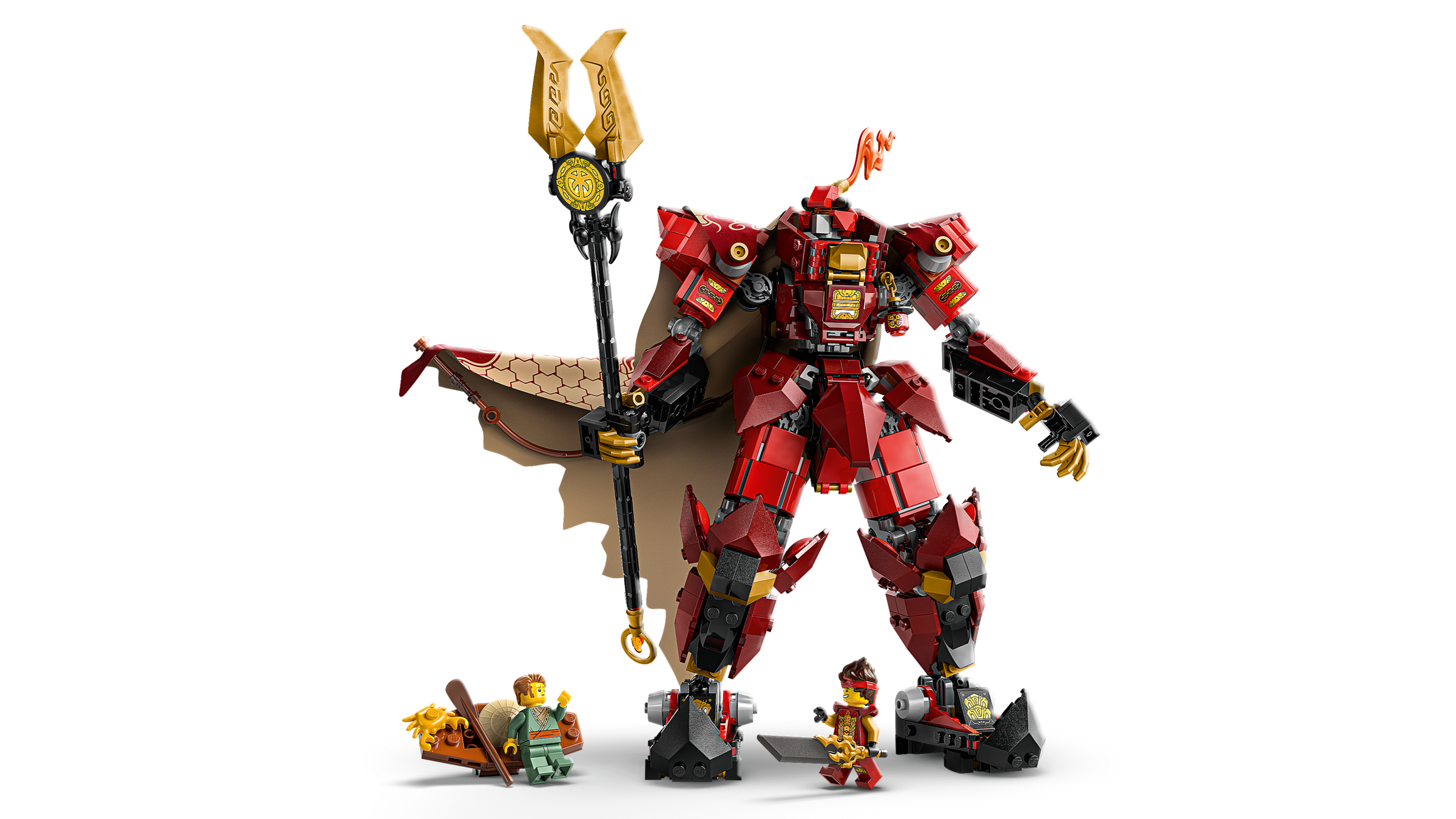 - 2 NINJAGO® minifigures – The model also includes ninja Kai with a blade, who can sit inside the mech’s chest, and a fisherman with a paddle in a boat to inspire extra storytelling