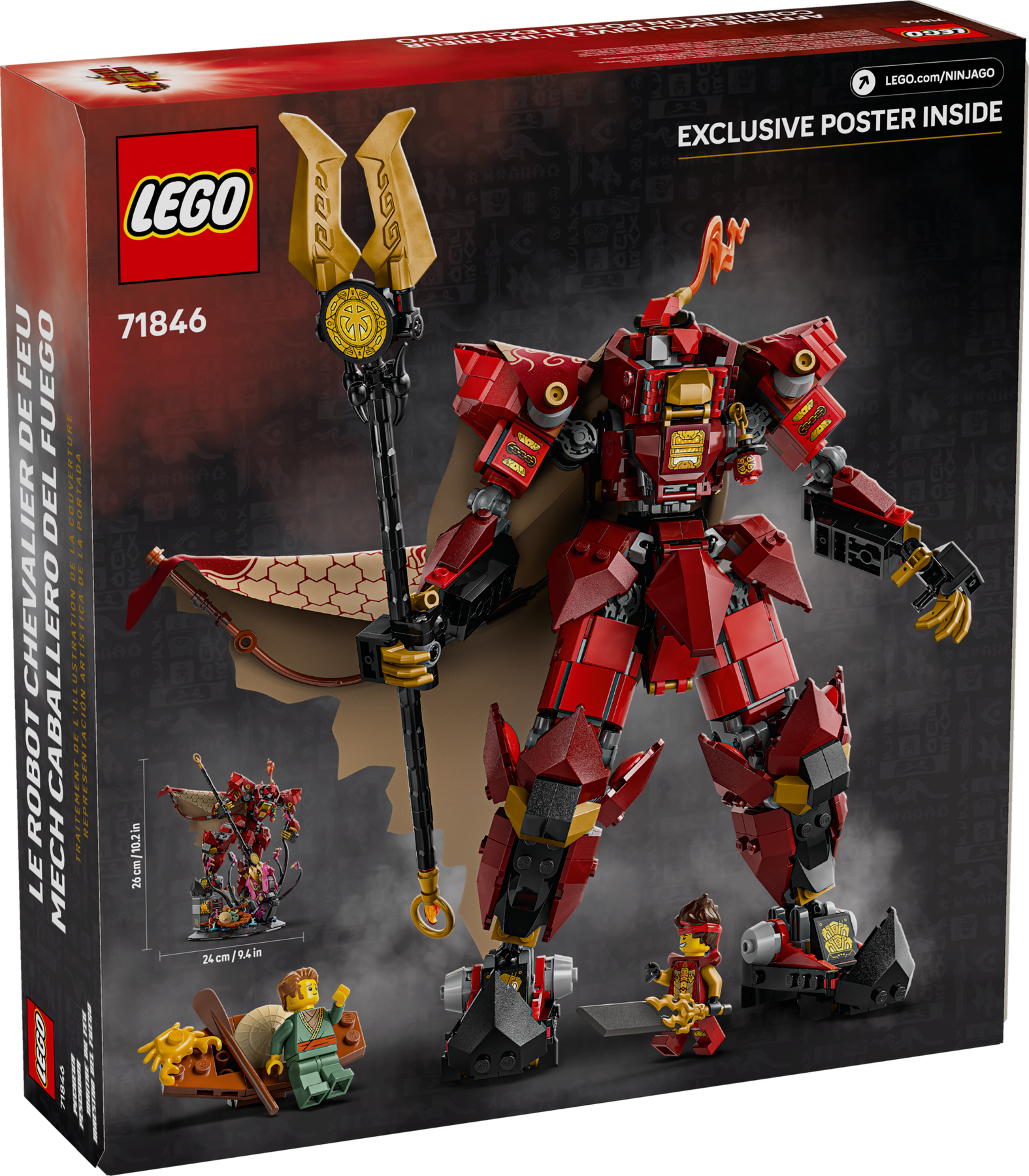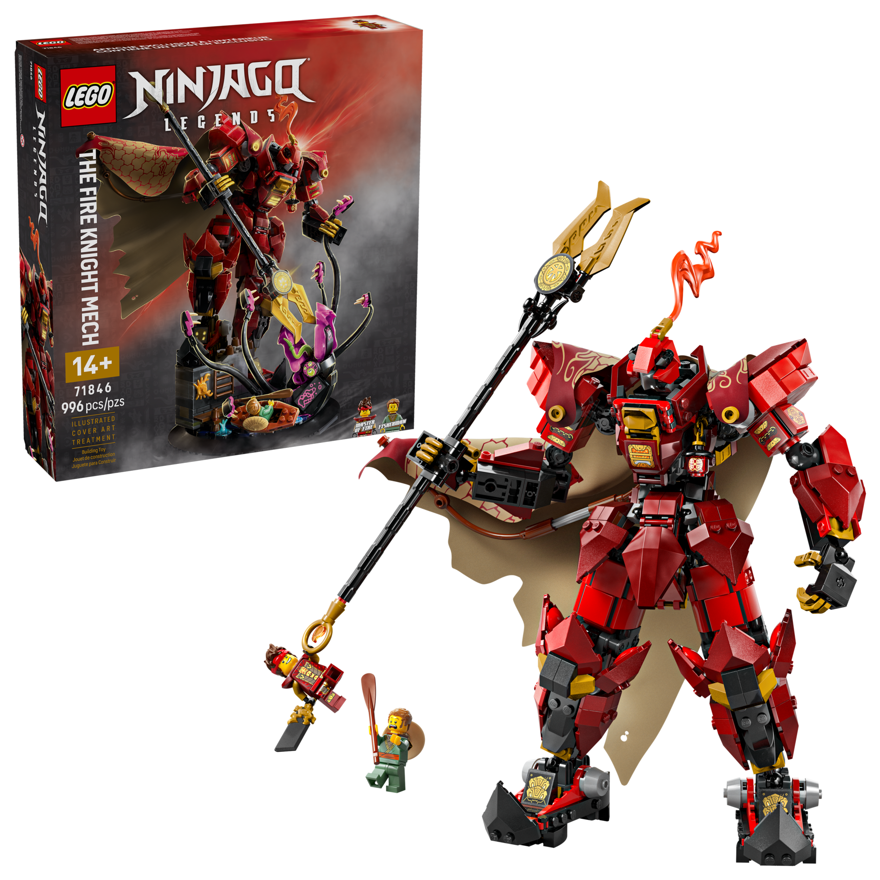Older NINJAGO® fans aged 14 and up can add to their collection of LEGO® NINJAGO models with this stunning and highly detailed The Fire Knight Mech (71846) building kit. It features a dramatic scene of a cape-wearing, spear-holding mech locked in battle with an ancient monster emerging from the sea, and it will look great on display in a bedroom.