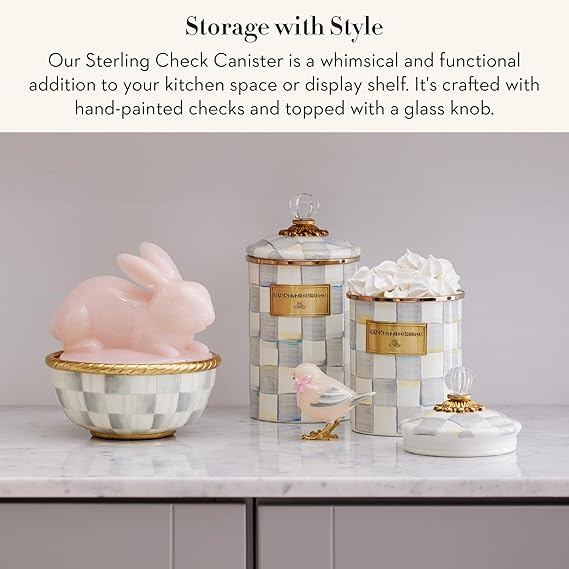 Medium Enamel Canister, Kitchen Storage Container for Flour and Sugar, 1.42 Liters, Grey-and-White Sterling Check
