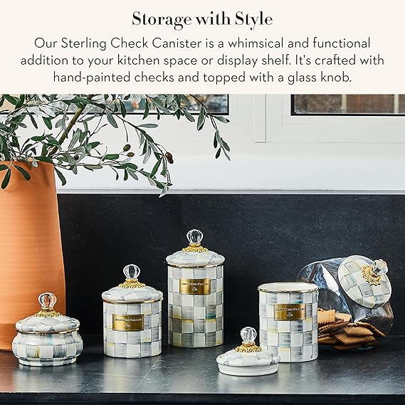 Small Enamel Canister, Kitchen Storage Container for Flour and Sugar, 1.13 Liters, Grey-and-White Sterling Check
