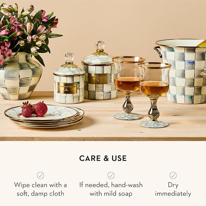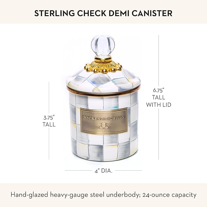 Sterling Check Enamel Canister, Gray-and-White Kitchen Storage Container with Lid, Demi